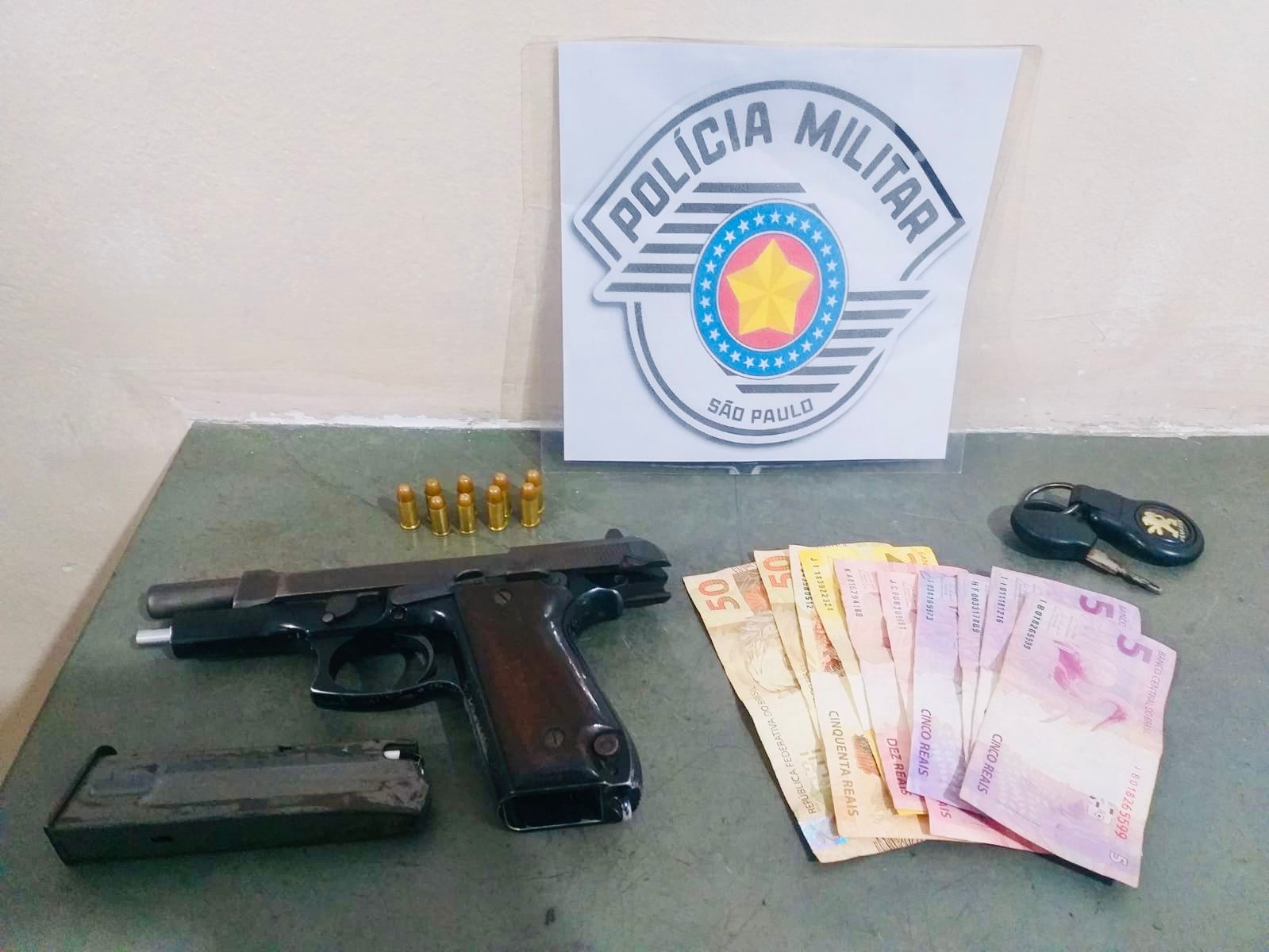 No local, os agentes vistoriaram um veículo estacionado na via e localizaram uma pistola calibre 765, com 09 munições. Sendo assim, foi dado voz de apreensão em flagrante ao responsável pelo armamento.
