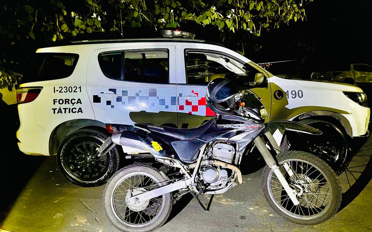 Na madrugada de hoje (23), policiais militares da Força Tática do 23º Batalhão de Polícia Militar do Interior apreenderam um adolescente por Ato Infracional de roubo a motocicleta. Ele foi abordado, na Rua Maria Rosa Paes, no bairro Ponte Alta, em Aparecida.