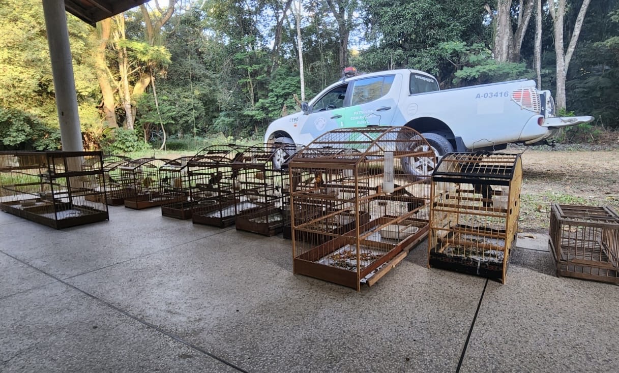 Os pássaros, gaiolas e alçapão, objetos desta apreensão, foram destinados ao CETAS IBAMA da cidade de Lorena.