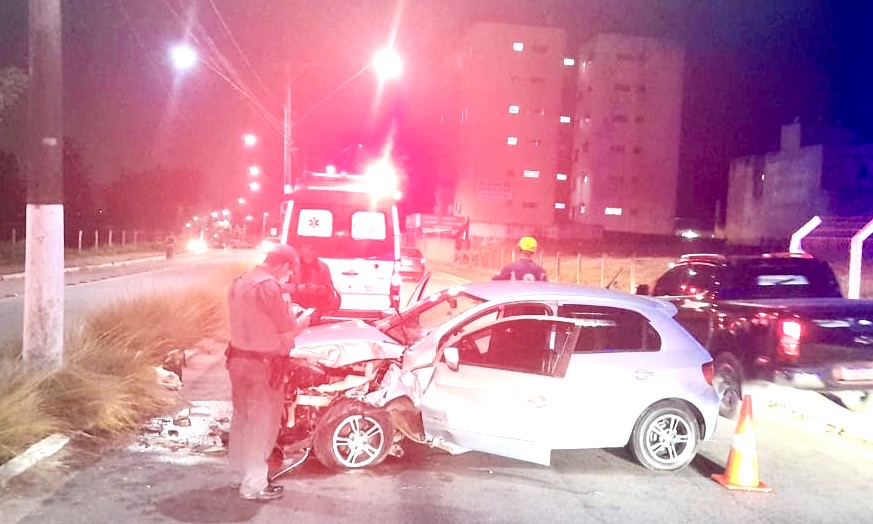 De acordo com informações, o veículo Gol, de cor prata, seguia sentido centro quando a motorista perdeu o controle da direção e bateu no posto, tendo parte frontal do carro destruída.