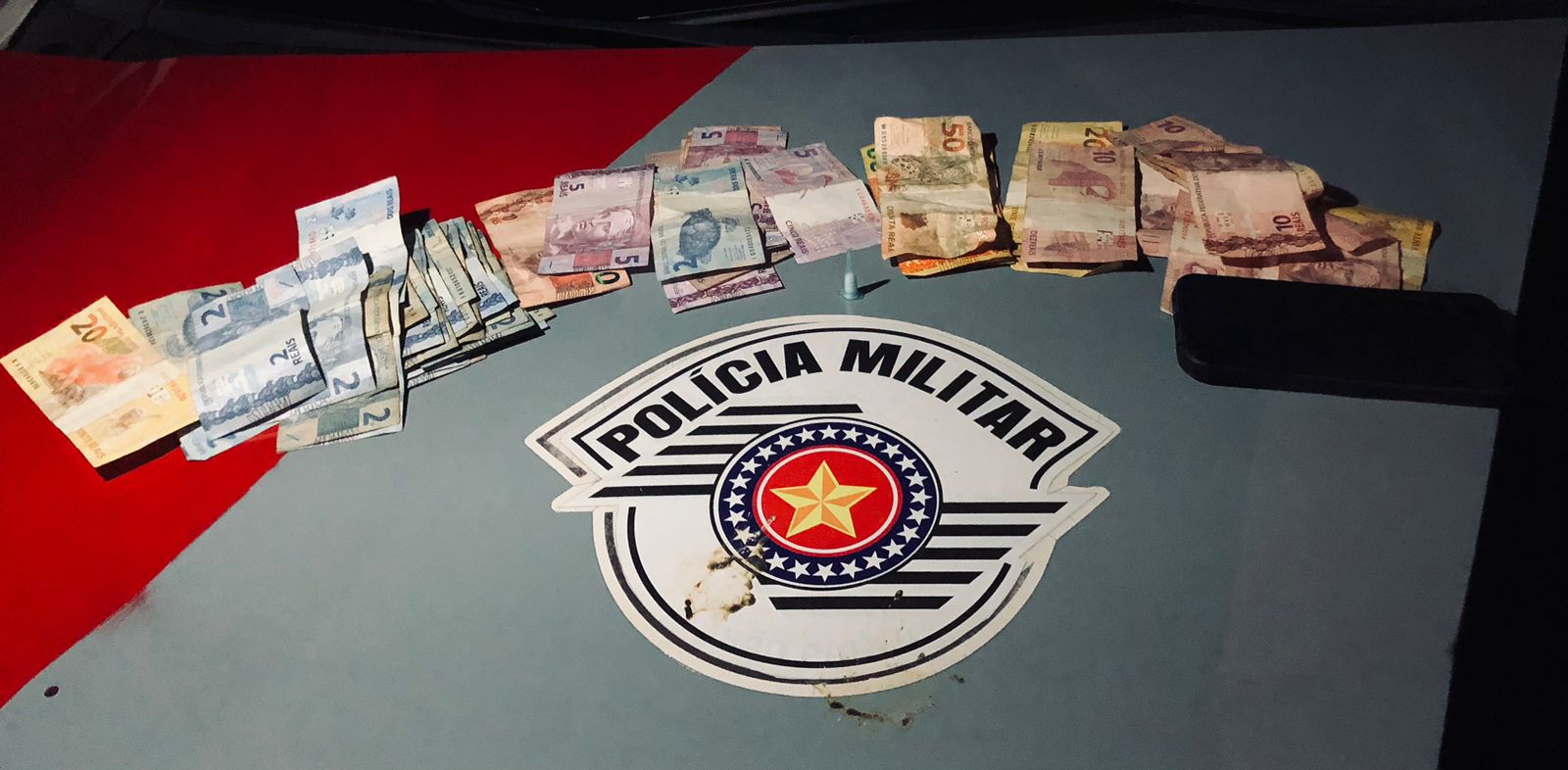 Em abordagem, foram apreendidos cerca de R$900 reais em dinheiro e uma porção de cocaína.