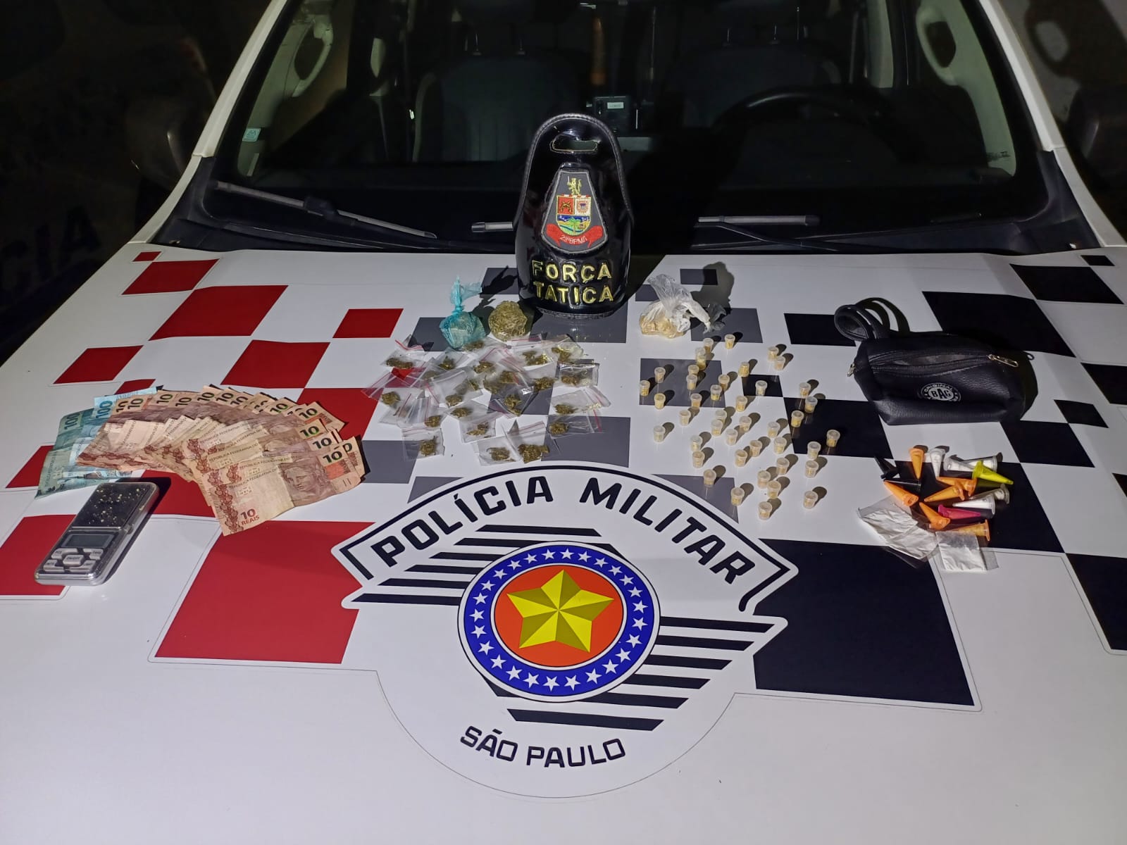 Dois homens foram presos por tráfico de drogas na noite desta quarta-feira (01), pela Rua João Aprígio Costa, no bairro Santa Terezinha, em Aparecida. Os dois suspeitos estavam numa motocicleta.