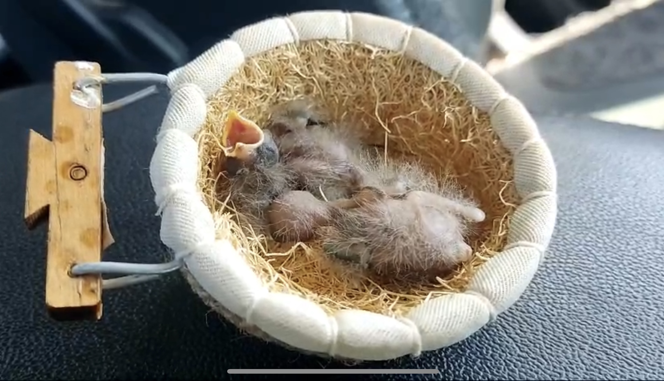 Durante a fiscalização, sobre a moto foi verificado um ninho com dois filhotes entre os dois suspeitos. Eles informaram ter encontrado os filhotes da espécie Tiziu (Volatinia jacarina) em uma estrada próxima.