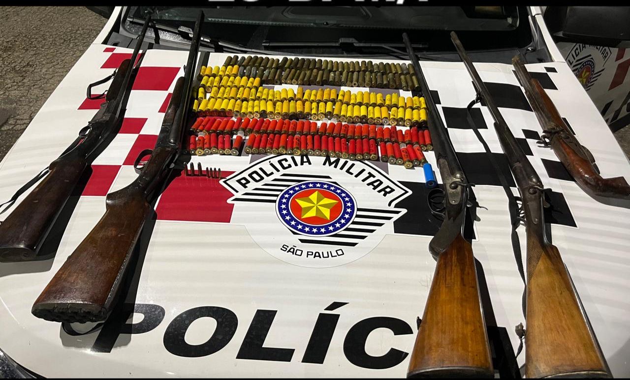 Entre os itens apreendidos estavam cartuchos de calibres 20, 24, 28, 32 e 22, somando mais de 200 unidades entre munições íntegras e deflagradas, além de um celular, documentos, um relógio e outros objetos pessoais. As armas não possuíam documentação legal.