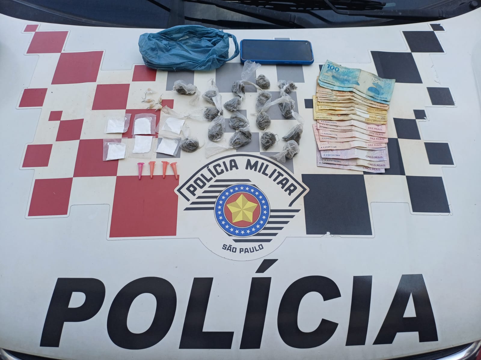 Um homem, de 24 anos, foi preso em flagrante por tráfico de drogas na manhã desta segunda-feira (1º), na Rua Vitória, no bairro Jardim Vista Alegre, em Guaratinguetá.