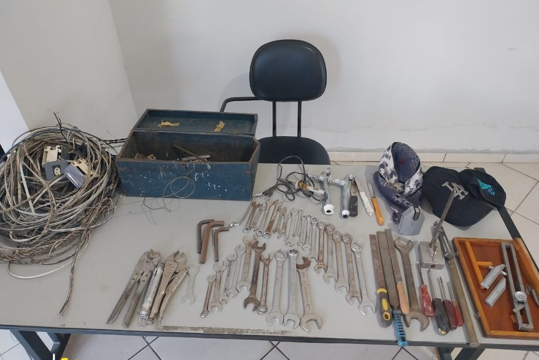 De acordo com informações do boletim de ocorrência, a Polícia Militar foi acionada via Copom e, ao chegar ao local, identificou a cerca elétrica rompida. Durante a vistoria, o suspeito foi encontrado tentando sair com uma caixa contendo os itens furtados.