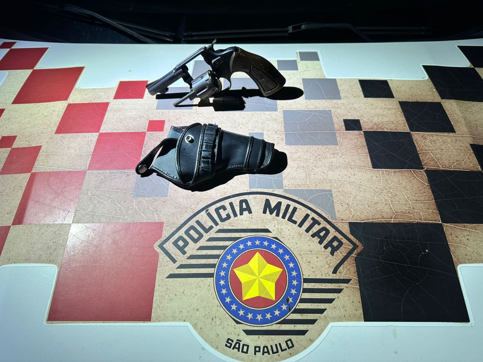 Diante da denúncia, os policiais intensificaram o patrulhamento e conseguiram localizar o suspeito, que foi prontamente abordado. Durante a busca pessoal, foi encontrado em sua cintura um revólver calibre .32, marca Rossi, municiado com cinco munições intactas.