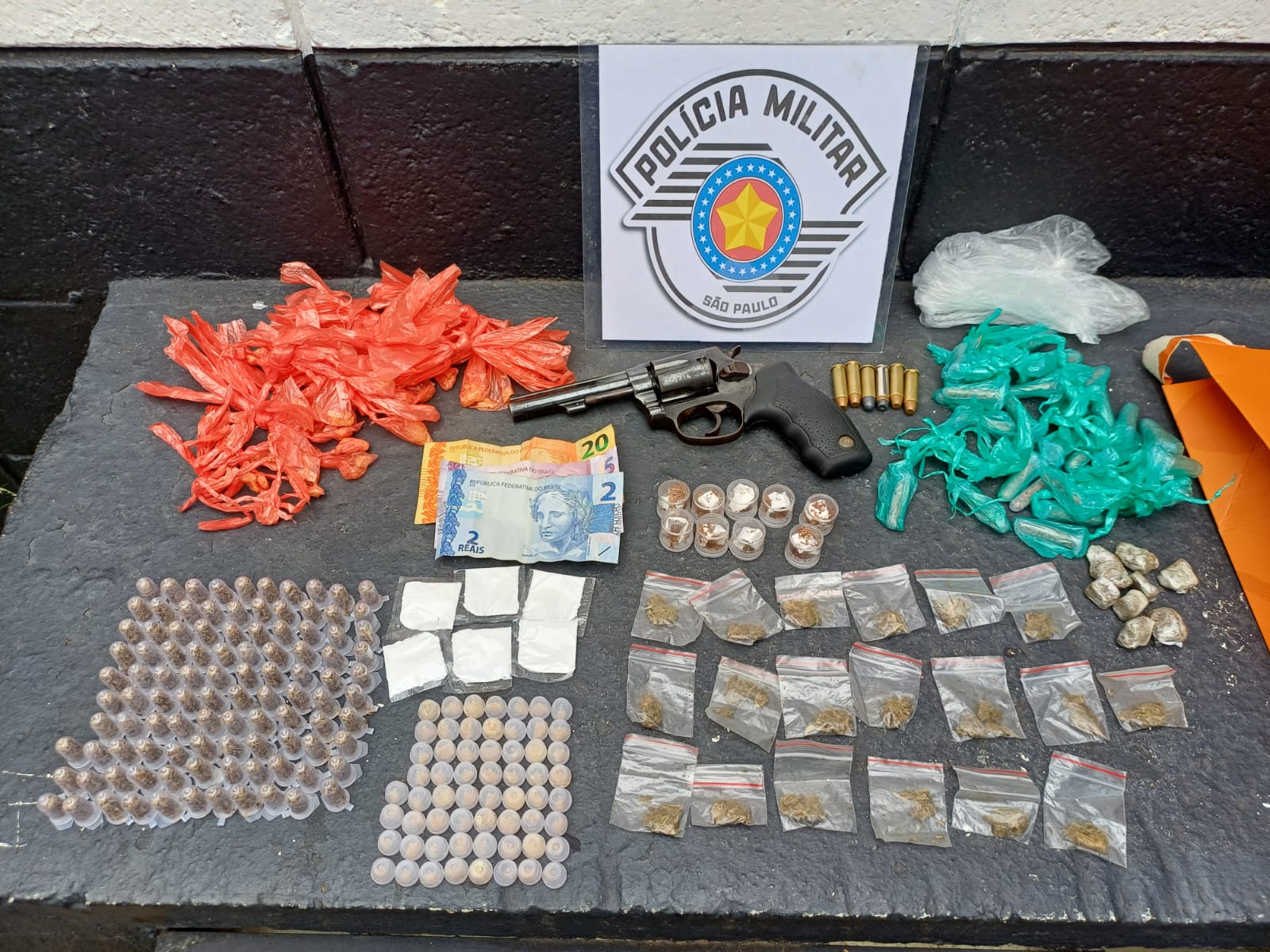 O caso foi registrado como tráfico de drogas e posse ou porte ilegal de arma de fogo de uso restrito na DISE de Guaratinguetá.