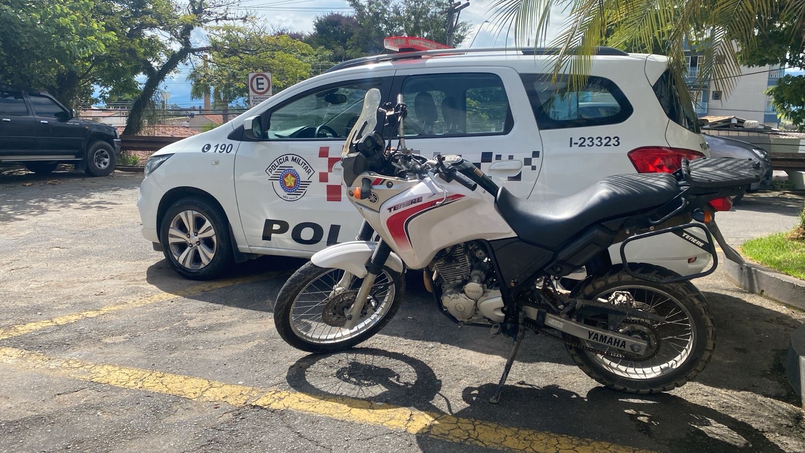 De acordo com a Polícia Militar, durante patrulhamento em Aparecida, os agentes avistaram uma motocicleta sem placa, transitando na Rodovia Presidente Dutra.