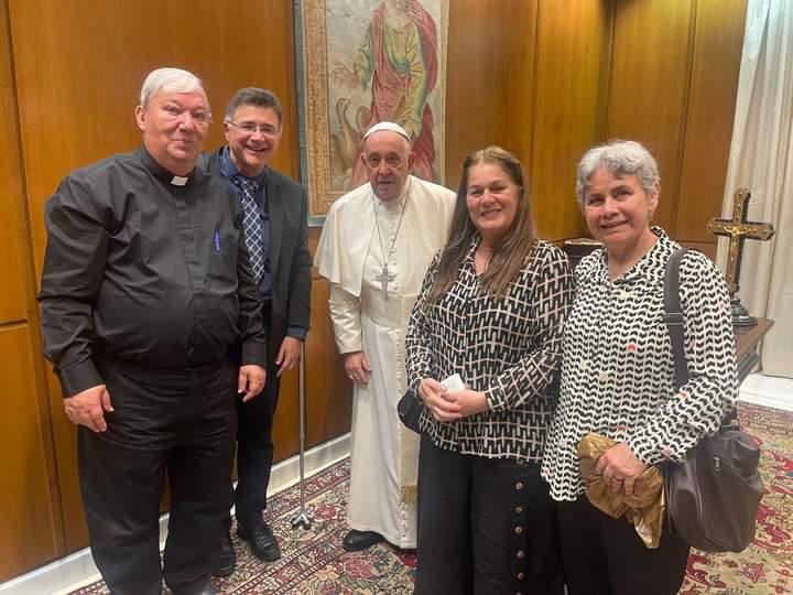 Nesta quarta-feira (21), às 7h30 (horário de Brasília), o Papa Francisco recebeu em audiência privada no Vaticano os quatro fundadores da Fazenda da Esperança; Frei Hans Stapel, Nelson Giovanelli, Iraci Leite e Lucilene Rosendo.