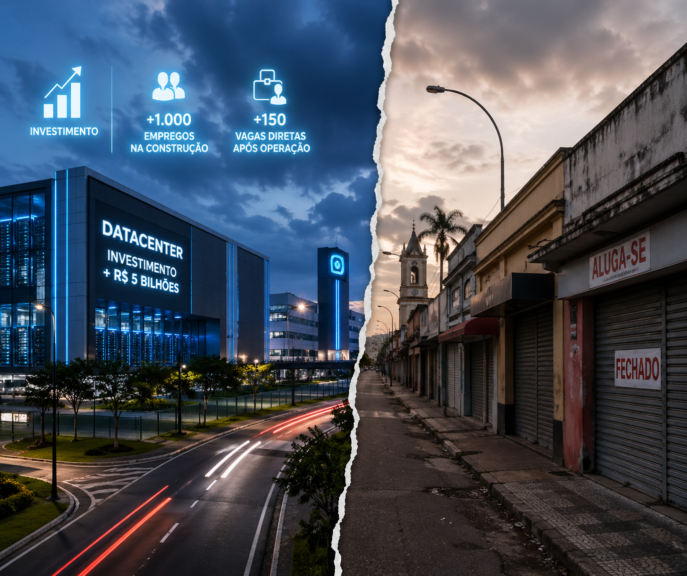 O cenário local é marcado por baixa atração de grandes investimentos e pelo fechamento de estabelecimentos comerciais, evidenciando um ritmo de crescimento mais lento frente ao avanço observado em municípios próximos.
